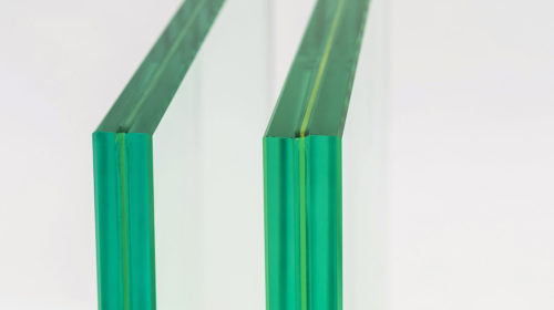 Standard laminated glass for structural balustrades commonly uses a PVB (poly vinyl butyl) interlayer, bonded between the toughened glass panels. These examples are 17.52mm (8+1.52PVB+8) and 21.52mm (10+1.52PVB+10) from standard toughened glass. Other thicknesses commonly used are 13.52mm and 25.52mm. Typically edge finish for PVB can vary so samples should be obtained. PVB is not 100% proof against moisture ingress.
