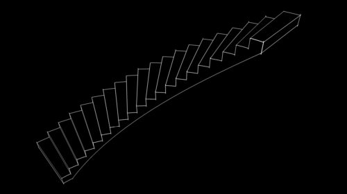 Not to be confused with a spiral or helical stair, a curved stair will generally be a large radius or sweeping curve. This may be purely as an independent design statement or to empathise with a building shape.
