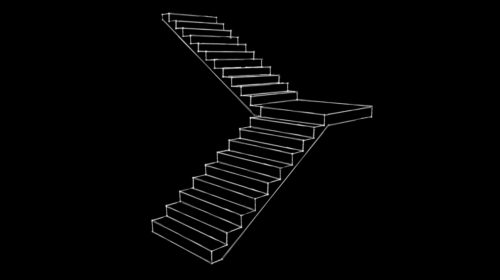 The switchback stair (also known as a scissor stair) is possibly one of the most common styles used in commercial buildings and fitouts due to their space efficiency. The cantilevered design has no supports under or over the landing and relies on the rigidity of the structure itself. The success of this design also depends upon the strength of the attachment zone on each floor.