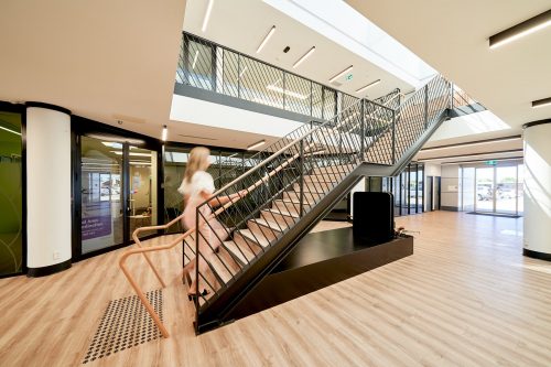 With it’s unique balustrade design, this architectural staircase is one of the hero’s of this new fitout space. the modular offsite construction was key to a seamless delivery and installation process. In the words of the fitout builder Active Metal were a “Professional team, easy to work with and gave total confidence through design and delivery”.
