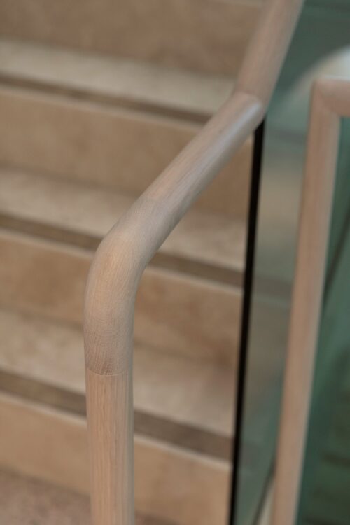 The unique design features a green tinted glass balustrade design with curved sections that deliver a somewhat art-deco aesthetic. Timber handrails in a lime wash finish tie in with the stone treads. With you every step of the way could also be the mantra for Active Metal as you ascend via the 2 architectural staircases to the upper level.