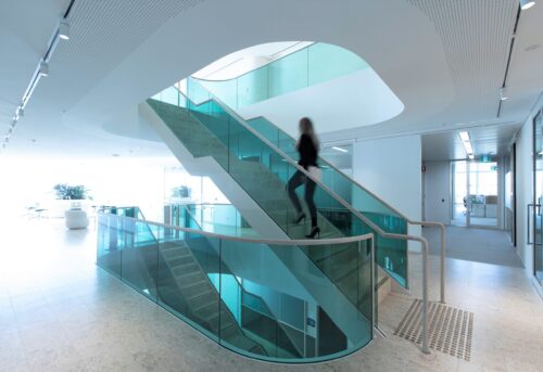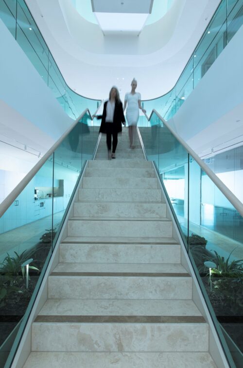 With collaboration and the opportunity for unplanned and often inspirational social encounters between staff, commercial stairs are more and more seen as a conduit for networking in the modern office environment. Reducing the load on the building elevators also helps, as does a little chance exercise.