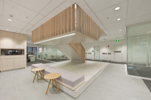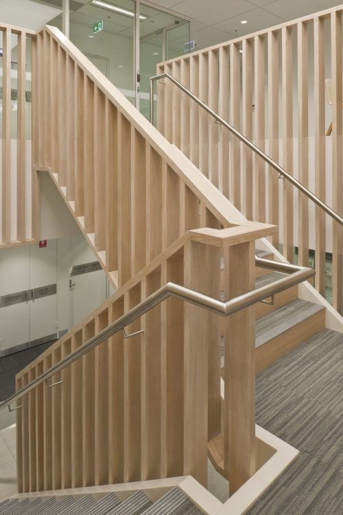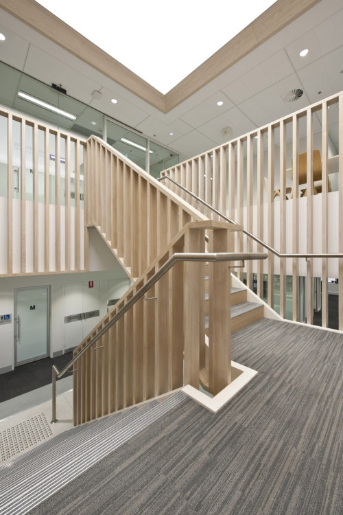 Using natural light to advantage and a light and bright colour scheme, State Super’s recent fitout has revitalised, lightened and modernised this office space with a Nordic flare. The combination of lime washed Victorian Ash balustrade members with clear finished cement board gives the stair a contemporary appearance which fits perfectly within the design brief.