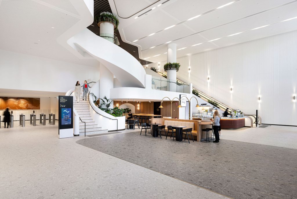 Suez, a global leader in resource preservation, has the vision to create a contemporary, open and connected work space for its Sydney head office, which would reflect the important natural and environmental elements of the Suez brand. Combining natural timbers with the greens of nature and shapes and tones of pebbles, the Suez office is a harmonious, inclusive and comfortable environment, where people can work, engage and connect with each other.